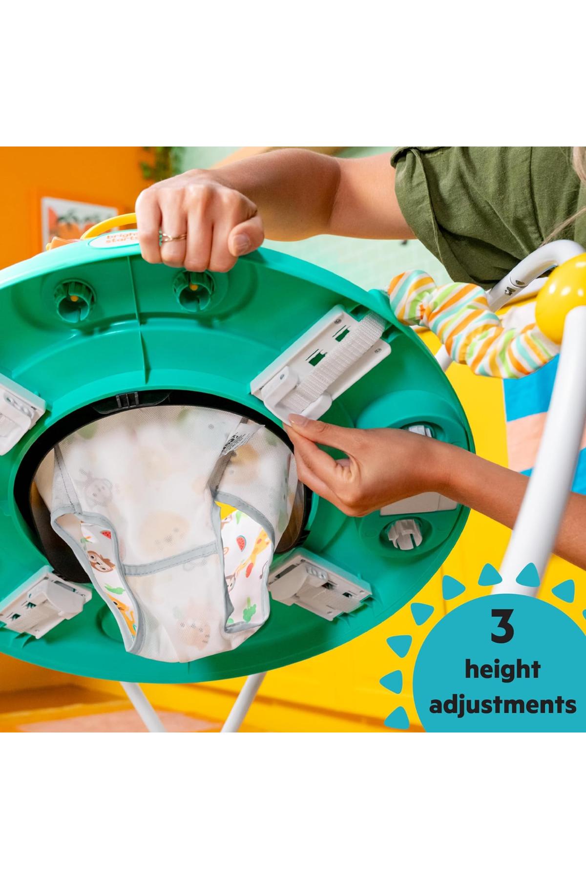 Enciende la música y las luces con 3 pilas AA; 3 ajustes de altura crecen con el bebé; ideal para edades de 6 a 12 meses o hasta 11,3kg.