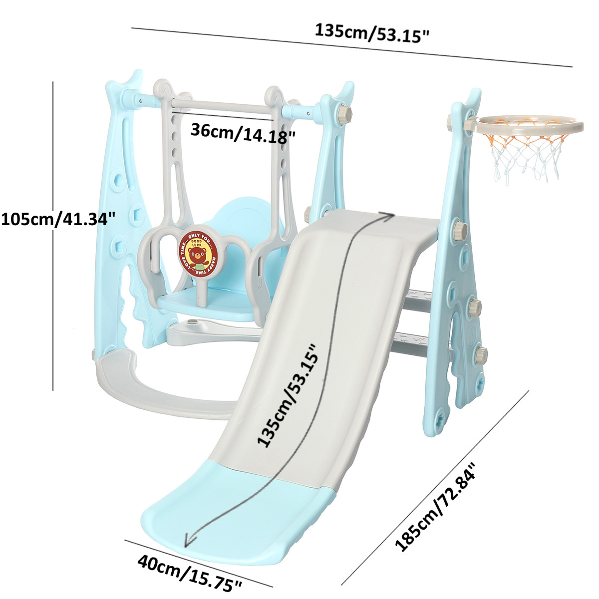 3 funciones: un deslizamiento suave, un columpio resistente, un aro de baloncesto y al que está destinado para uso familiar y doméstico al aire libre. Todos los elementos de actividad tienen el tamaño adecuado para los niños pequeños.