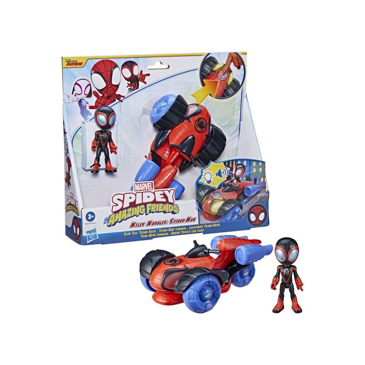 ¡El Hombre Araña se equipa con su nuevo Traje rojo y negro para luchar contra el mal y derrotar a todos los villanos! ¡Imagina que te lanzas a una nueva aventura! Con esta línea de juguetes inspirada en la película, los niños pueden imaginar que lanzan telarañas y trepan muros enfrentando nuevos desafíos y villanos. Los niños pueden imaginar sus propias aventuras épicas con esta figura Equipo arácnido misterio inspirada en la película del Hombre Araña, parte del Universo Cinematográfico de Marvel.